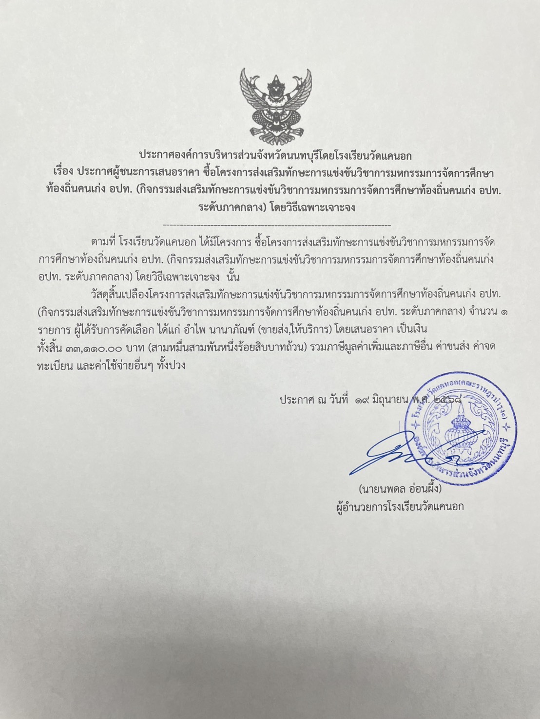 ประกาศเผยแพร่สาระสำคัญใบสั่งซื้อเลขที่ 23/2568 ลงวันที่ 19 มิถุนายน 2568 ซื้ออุปกรณ์และวัสดุสิ้นเปลืองเพื่อใช้ในโครงการส่งเสริมทักษะการแข่งขันวิชาการมหกรรมการจัดการศึกษาท้องถิ่นคนเก่ง อปท. (กิจกรรมส่งเสริมทักษะการแข่งขันวิชาการมหกรรมการจัดการศึกษาท้องถิ่น