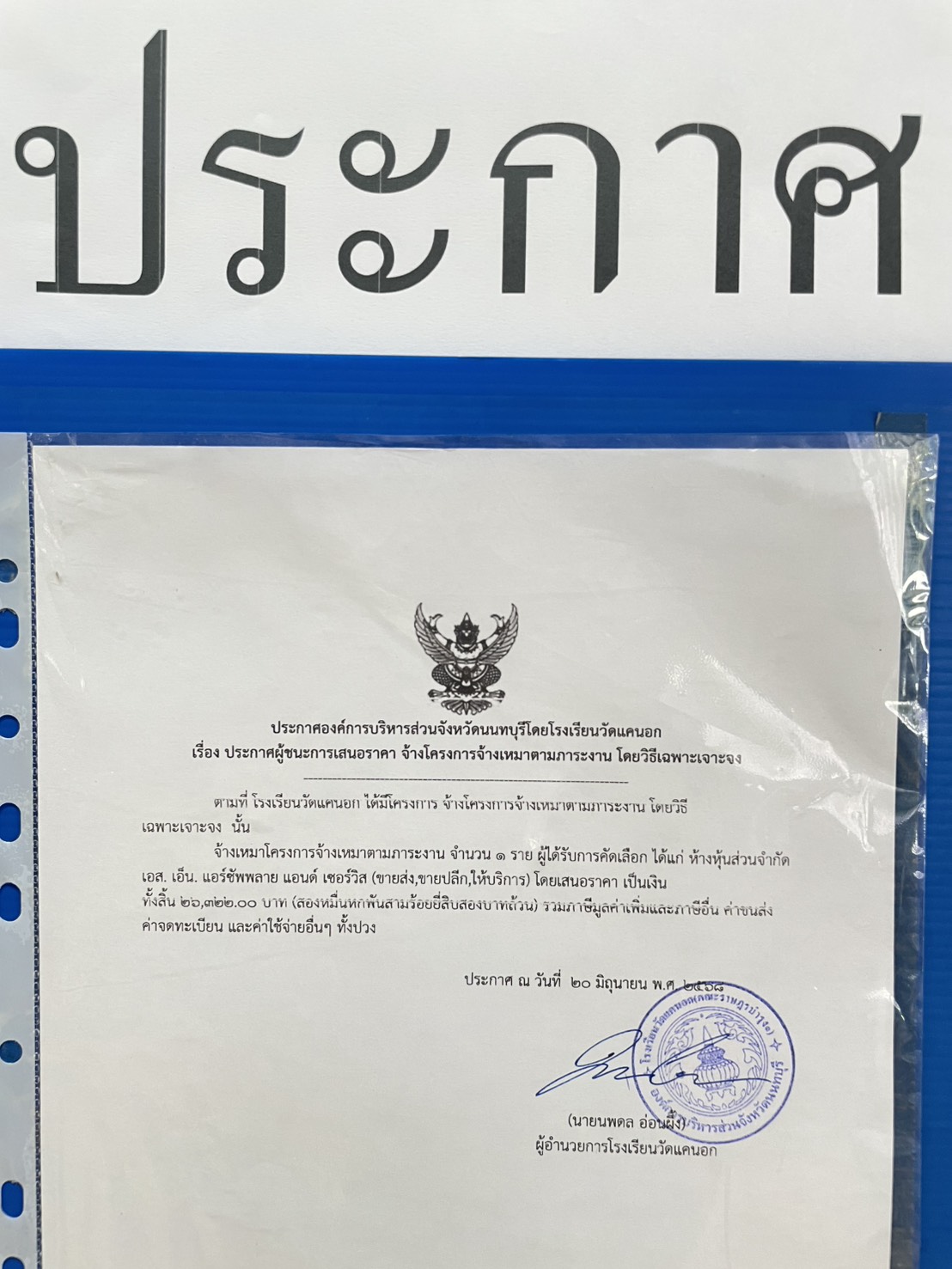 ประกาศเผยแพร่สาระสำคัญใบสั่งจ้างเลขที่ 7/2568 ลงวันที่ 20 มิถุนายน 2568 จ้างเหมาโครงการจ้างเหมาตามภาระงานเพื่อใช้ในโครงการจ้างเหมาตามภาระงาน